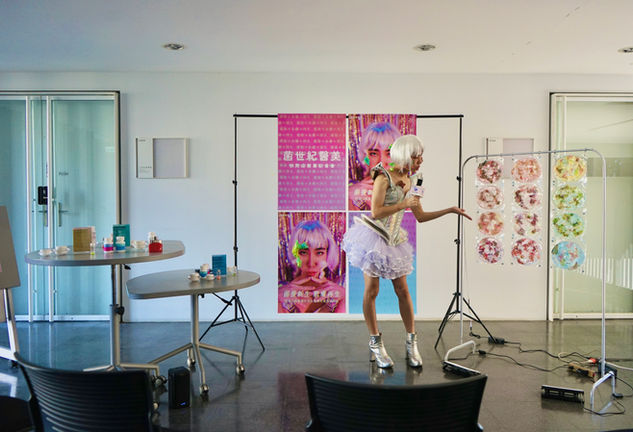 藝術家以醫美品牌代言人的身份主持這場未來產品發表會,並與觀眾展開即興對話互動。藉由產品發表與示範過程,以誇張而幽默的方式,揭示極端氣候下的身體危機,同時也反映消費文化與美容產業在未來世界的轉變。